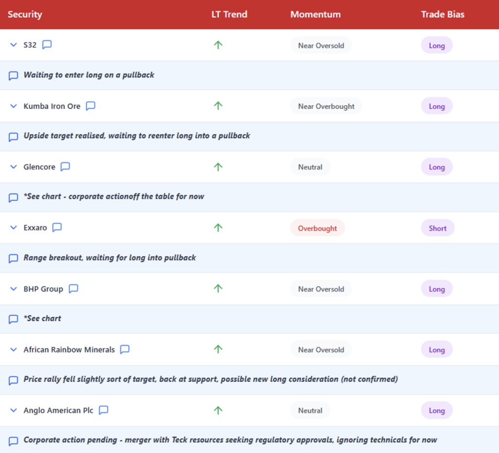 There is heightened volatility in the resource space at present, so smaller position sizes and extra caution is advised.