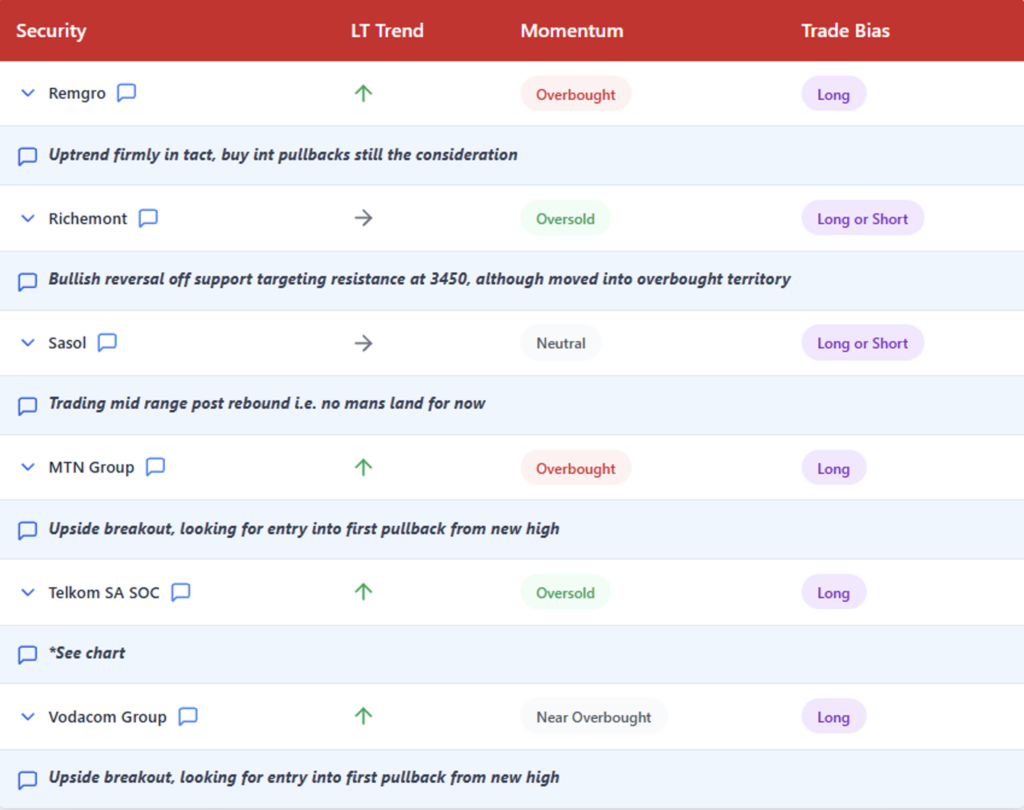 Shaun is a senior analyst specialising in derivatives trading and technical analysis across index, commodity, FX, and equity markets. With nearly 20 years of experience in financial markets, Shaun brings deep expertise to his role, presenting research and analysis to Rand Swiss clients. Shaun is a regular commentator on local and global financial markets, contributing to major media outlets including CNBC Africa, Reuters, Moneyweb, and Business Day. He produces daily and weekly market reports focused on technical analysis and trading opportunities in his core markets. As a registered person at the JSE and a Certified Financial Technician (CFTE), Shaun combines formal credentials with practical market expertise.