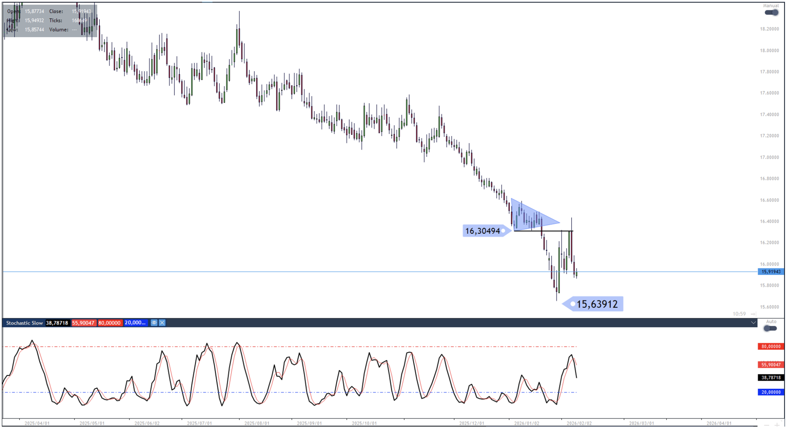 Provided that 16.30 remains (unbroken) resistance, 15.63 remains the near-term support target from the move.
