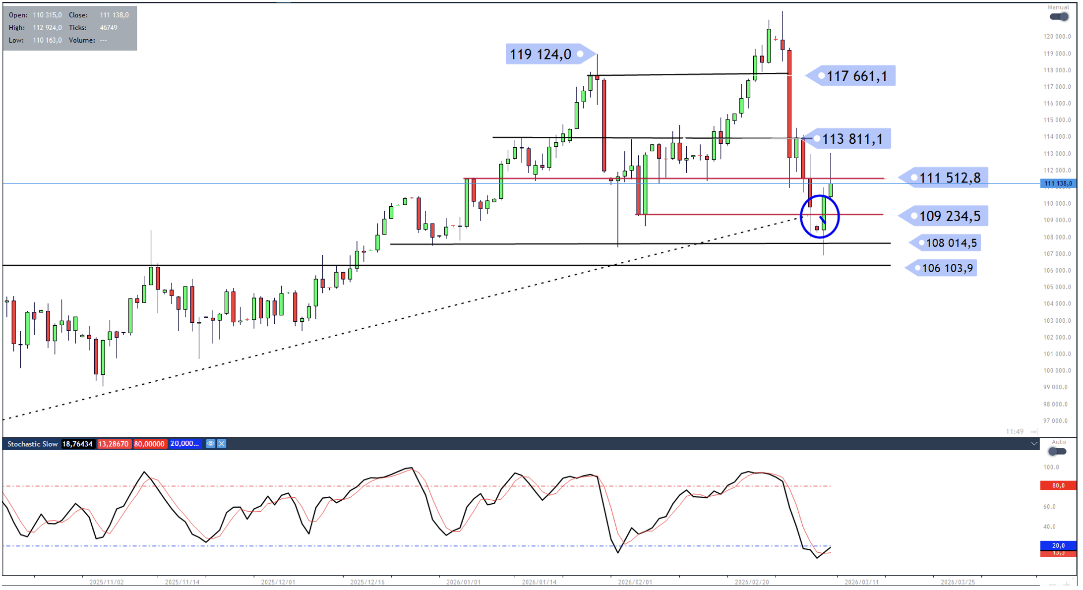 We have a bullish price reversal at support (108014) and from oversold territory, suggesting the end of the war-induced correction.