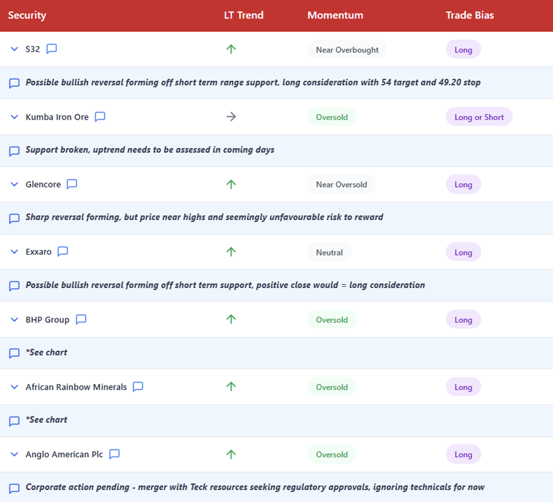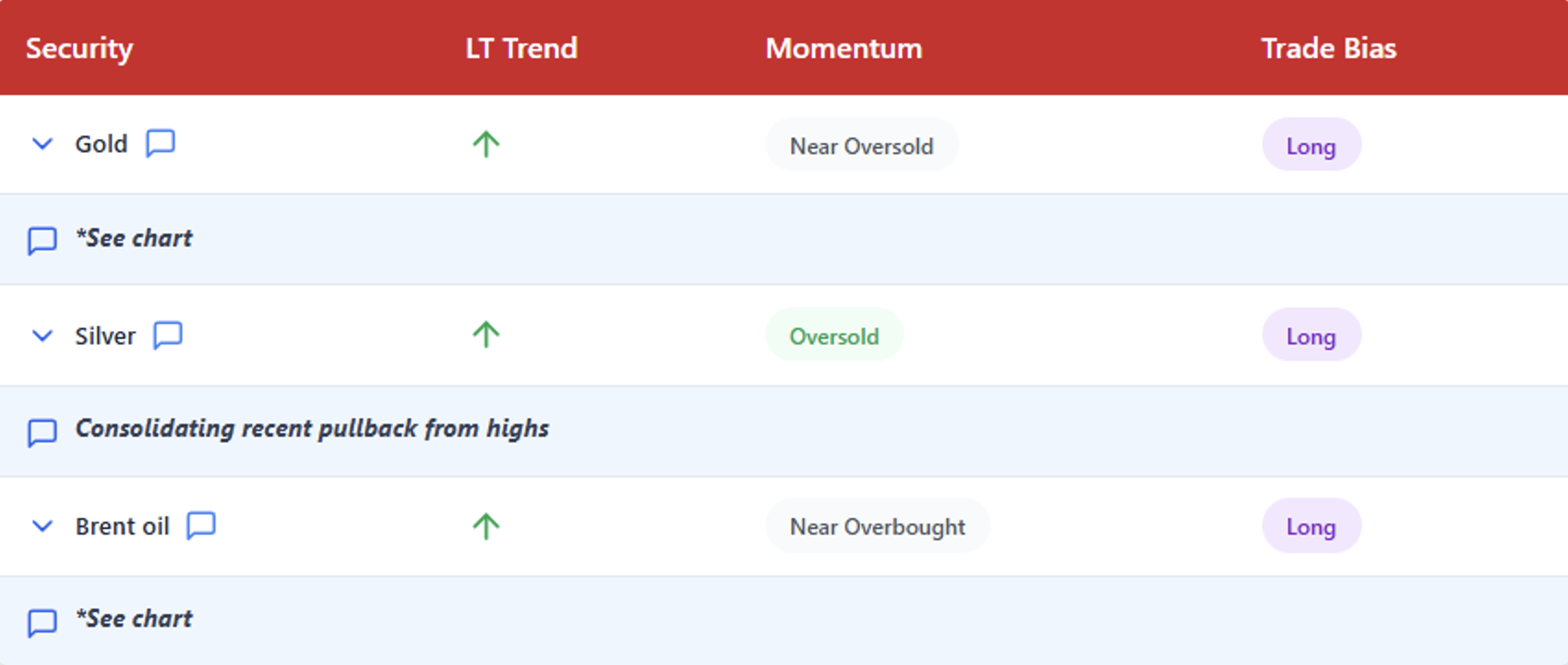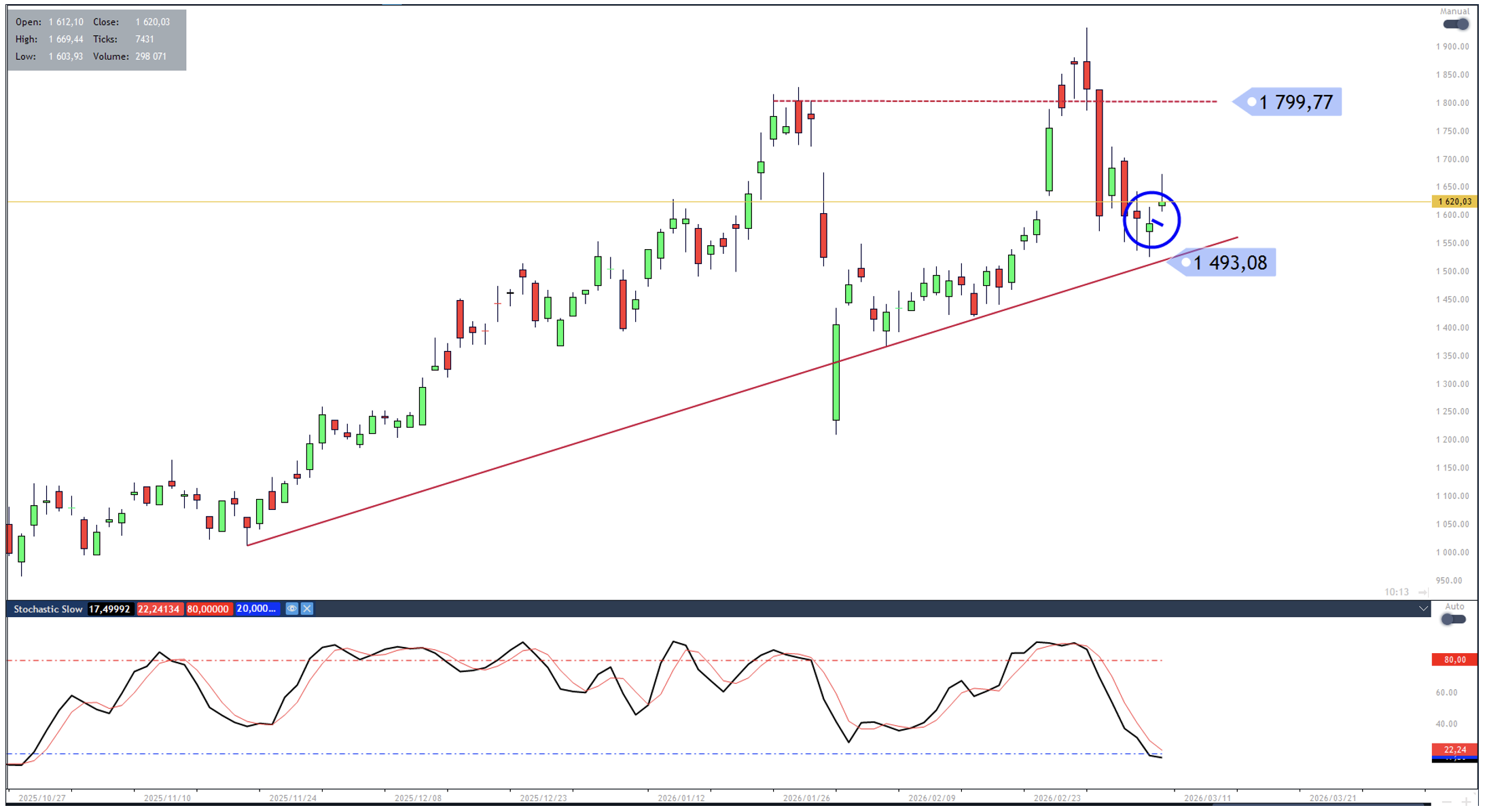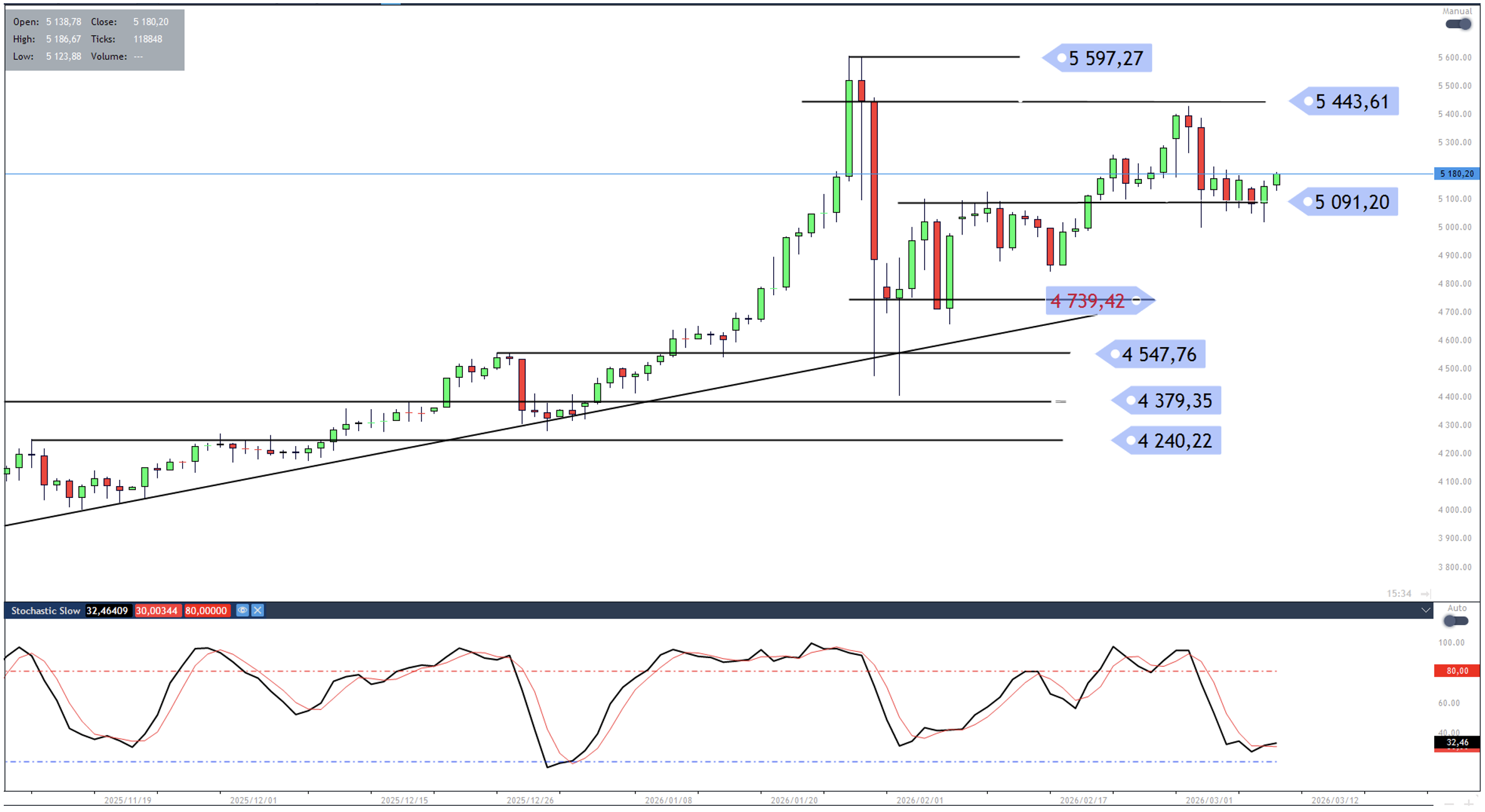 Several major instruments are now testing key technical levels, with early signs of bullish reversals emerging from oversold conditions across equities and resources. While the broader environment remains uncertain, price action suggests markets may be beginning to rebuild momentum from important support levels.