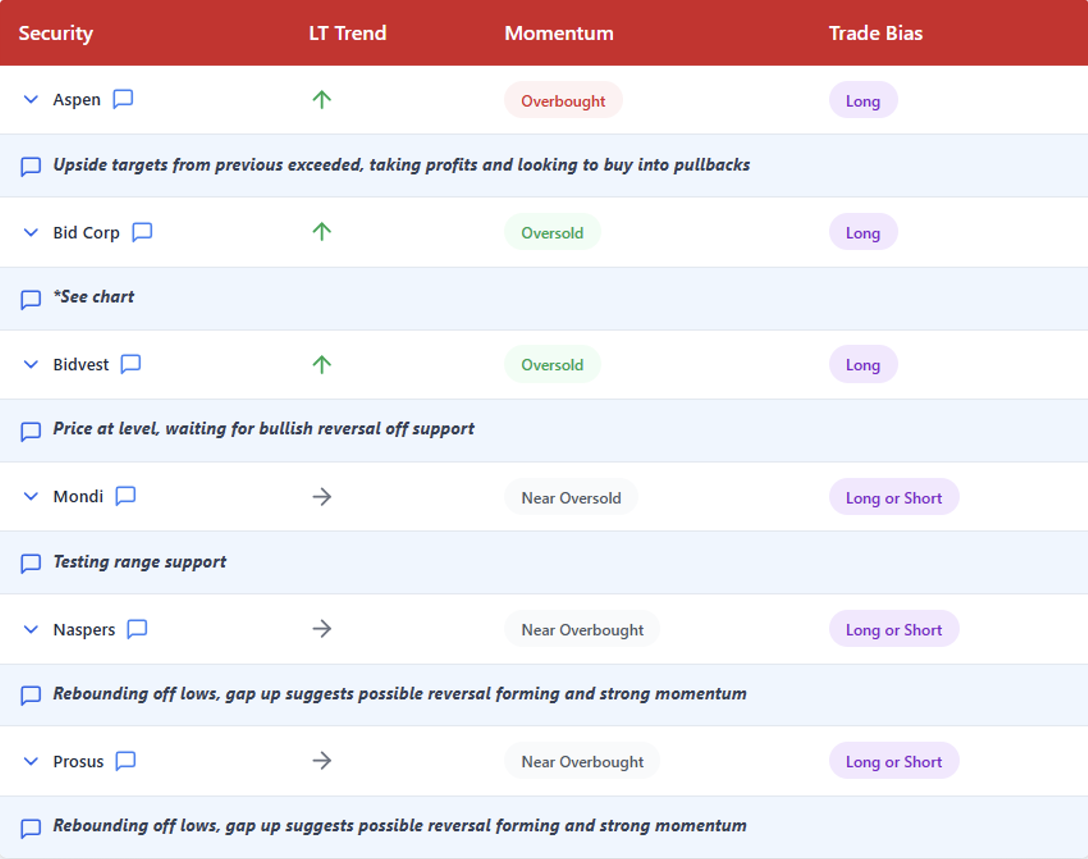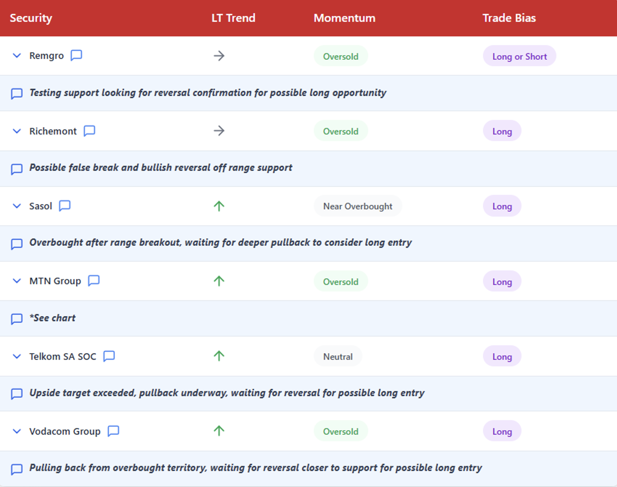 Shaun is a senior analyst specialising in derivatives trading and technical analysis across index, commodity, FX, and equity markets. With nearly 20 years of experience in financial markets, Shaun brings deep expertise to his role, presenting research and analysis to Rand Swiss clients. Shaun is a regular commentator on local and global financial markets, contributing to major media outlets including CNBC Africa, Reuters, Moneyweb, and Business Day. He produces daily and weekly market reports focused on technical analysis and trading opportunities in his core markets. As a registered person at the JSE and a Certified Financial Technician (CFTE), Shaun combines formal credentials with practical market expertise.