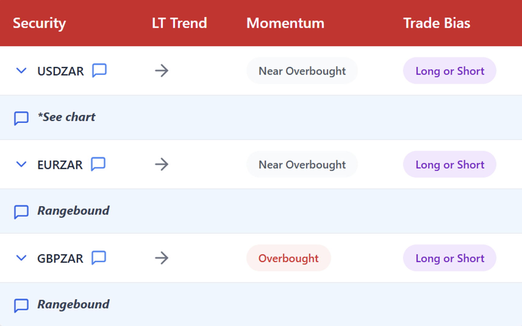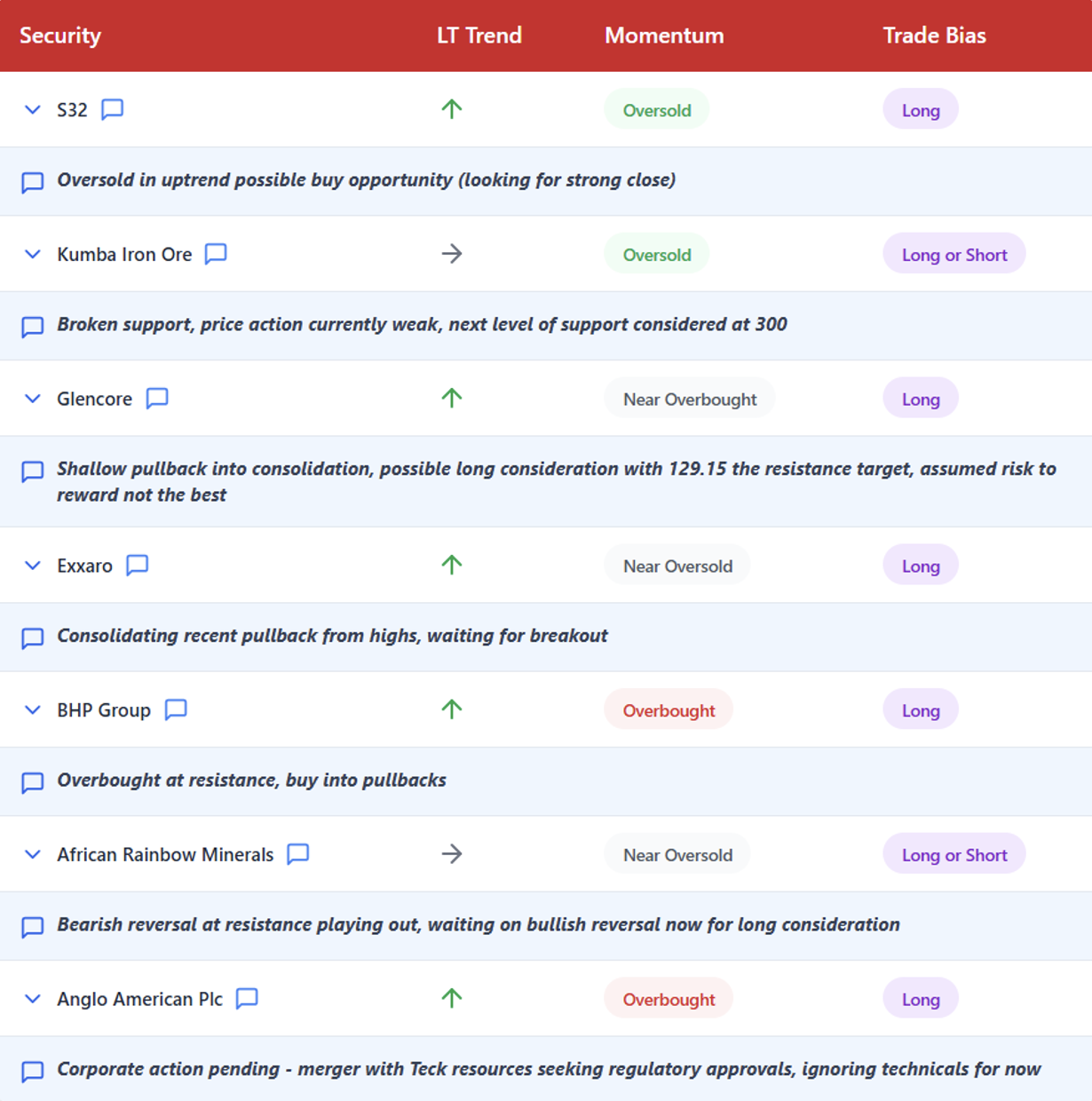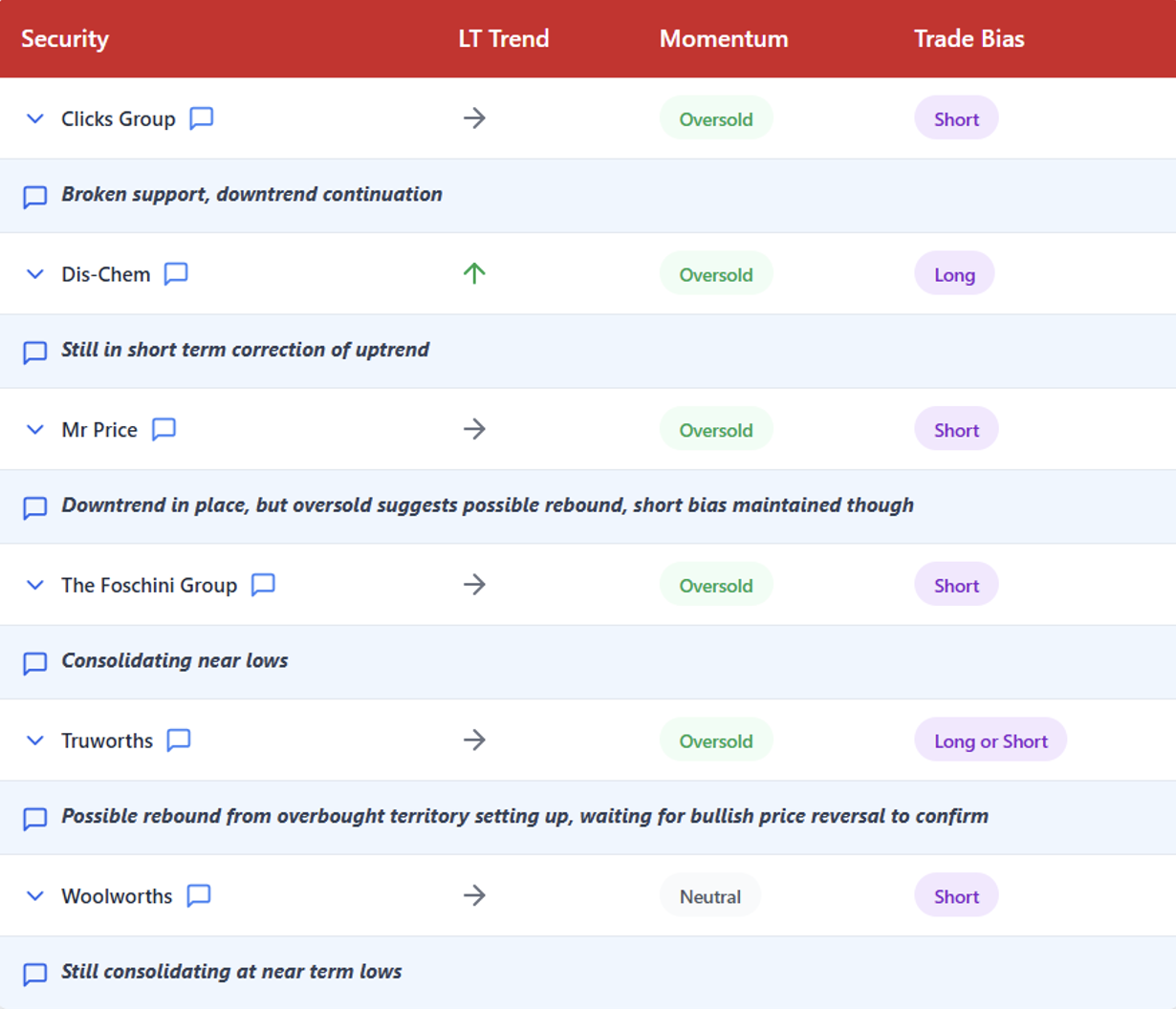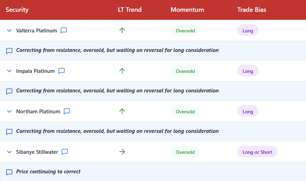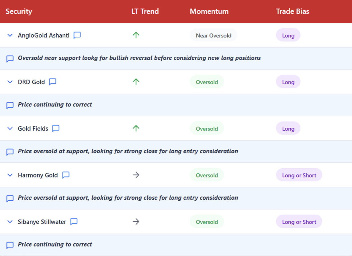 On the JSE, Nedbank and Standard Bank are showing early signs of reversing higher from oversold support, and Richemont offers a potential re-entry after completing its first pullback since breaking out.