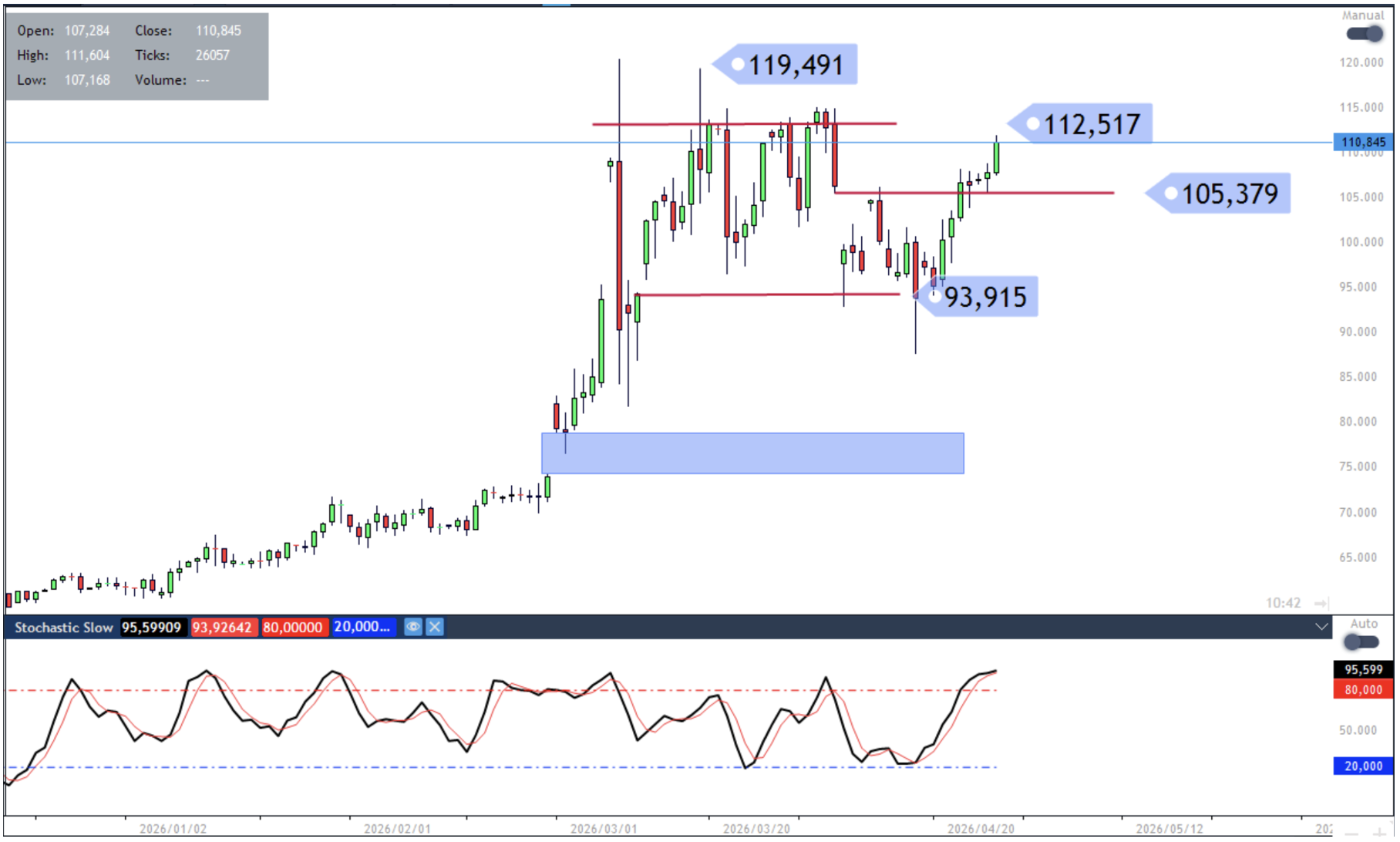 Traders who are long will hope to see the 4,602-level maintained as a close below could suggest further decline with 4,547 the next support target. Ideally, we would like to see a close back above 4,647 before reinstating new long positions and targeting a move towards resistance. However, if the 4,547 level doesn’t hold, and we instead see a close below, there is not a lot in the way of support until the 4,375 level.