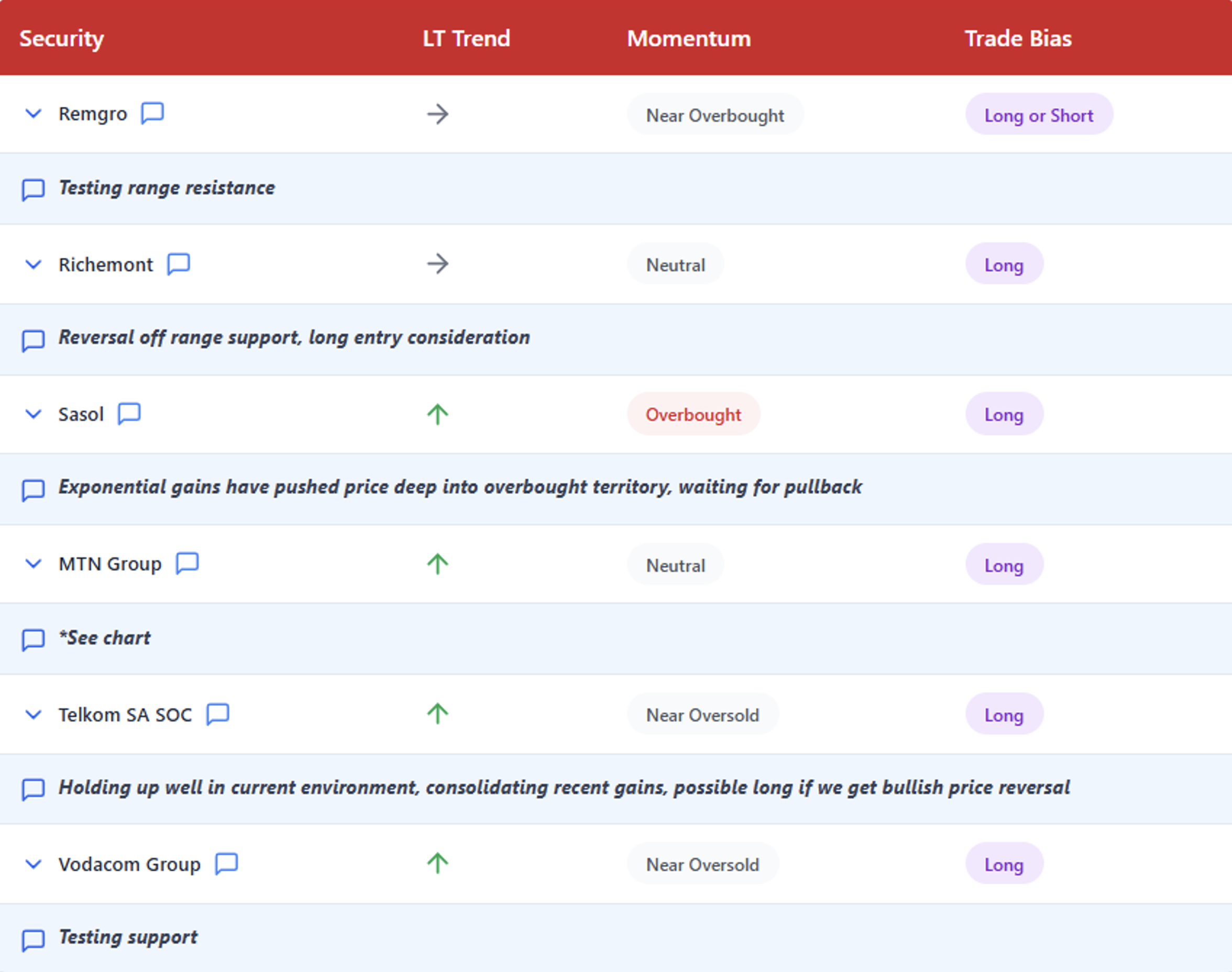 MTN may be one for traders to put on the watchlist for now. The long-term trend is up, although in the short term, the share price has been consolidating within a triangle-shaped formation. Triangles in an uptrend suggest that a continuation of the long-term uptrend may be nearing. The approach to trading these patterns is to wait for a confirmed break of the pattern’s resistance before committing to the directional momentum.
