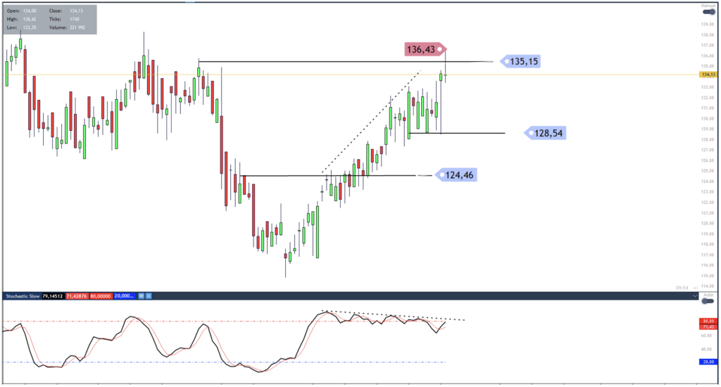 Should a price reversal not confirm and the price instead continue to grind beyond the 135.15 level, no trade would be considered.